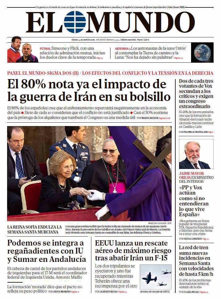 Portada de EL MUNDO del sábado 4 de abril de 2026